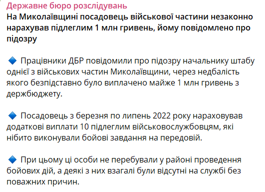 Начштаба воинской части в Николаевской области получил подозрение. Фото: ГБР