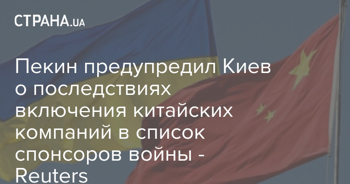 Китай заявил Украине, что на отношениях двух стран может "негативно отразиться" включение более десятка китайских компаний в список "международных спонсоров войны" Национального агентства по вопросам предотвращения коррупции (НАПК).