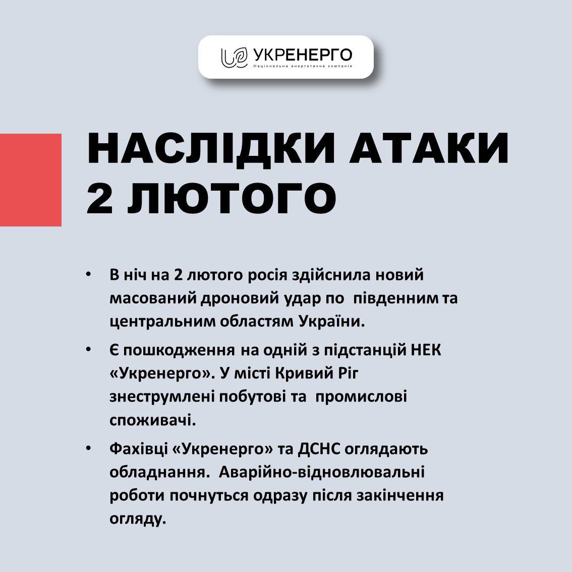 Причина отключения света в Кривом Роге - удар "Шахида" по подстанции, сообщает "Укрэнерго".