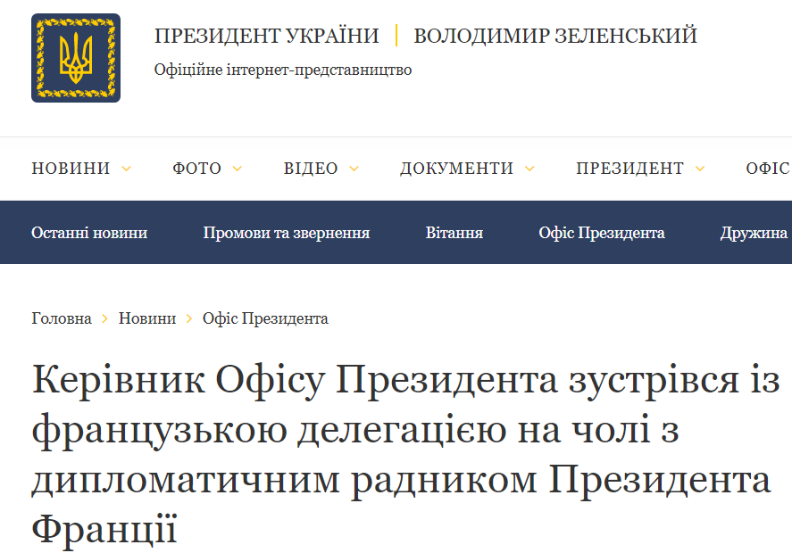 Так Жовква прокомментировал визит в Украину нескольких советников президента Франции Эмманюэля Макрона, которые провели сегодня переговоры на Банковой.