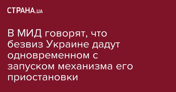 В МИД говорят, что безвиз Украине дадут одновременном с запуском механизма его приостановки