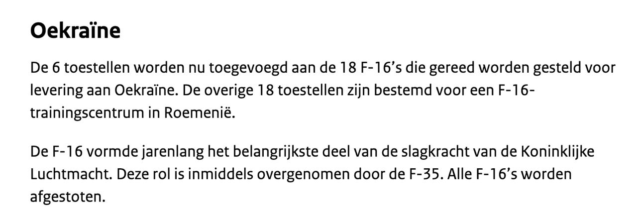 Напомним, Амстердам обещал передать Украине все свои 42 самолёта F-16: большую часть непосредственно Воздушным силам, оставшиеся - для обучения украинских пилотов.