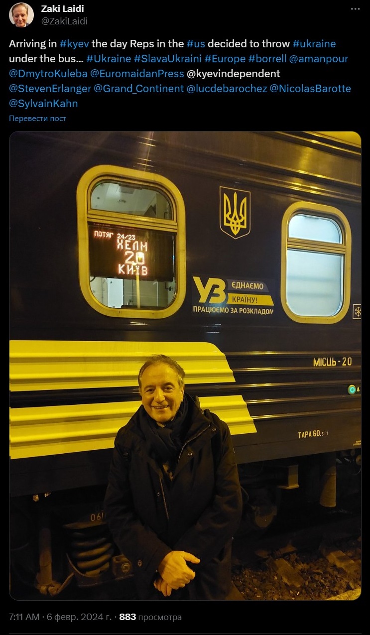 Лайди выложил в соцсети X фотографии с поездом "Укрзализныци".