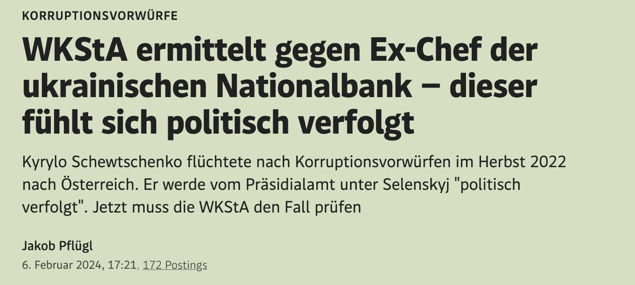 "Преступления, которые инкриминируют Шевченко в Украине, тоже наказываются в Австрии. Сейчас экономически-коррупционная прокуратура (WKStA) проводит расследование относительно злоупотребления доверием в отношении украинца и других подозреваемых. В то же время его заявление о предоставлении убежища остается в Федеральном ведомстве иммиграции и убежища (BFA)", — пишет издание.