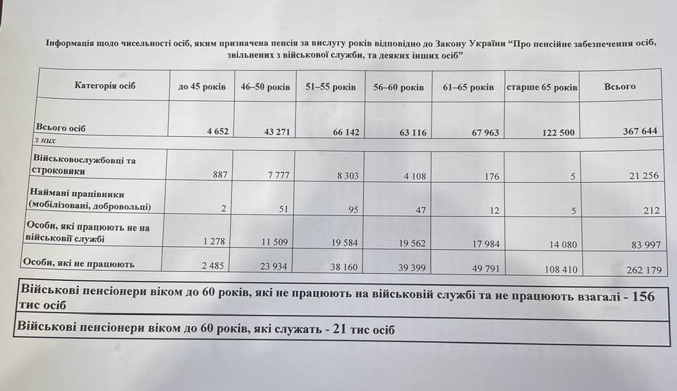 Третьякова опубликовала соответствующую таблицу с информацией о численности граждан, которым назначена пенсия за выслугу лет в соответствии с законом Украины "О пенсионном обеспечении лиц, уволенных с военной службы и некоторых других лиц".