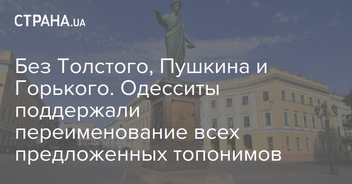 Жители Одессы проголосовали за переименование топонимов в честь Льва Толстого, Пушкина и Горького.
