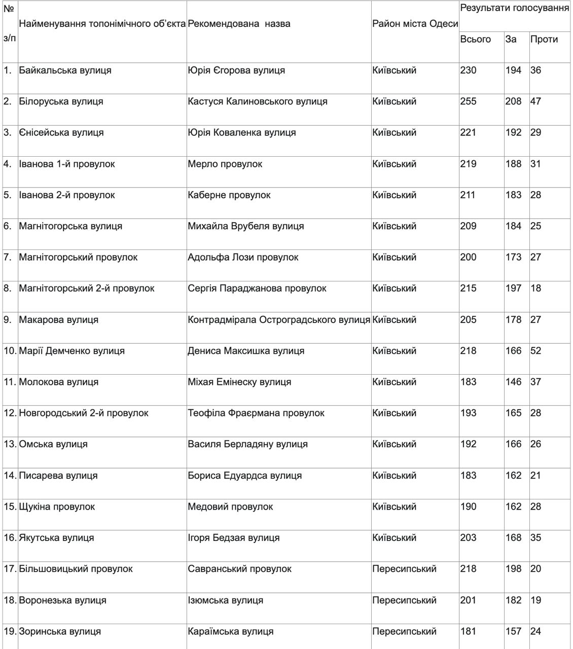 Одесситы поддержали переименование всех предложенных топонимов. Но по некоторым было много несогласных.
