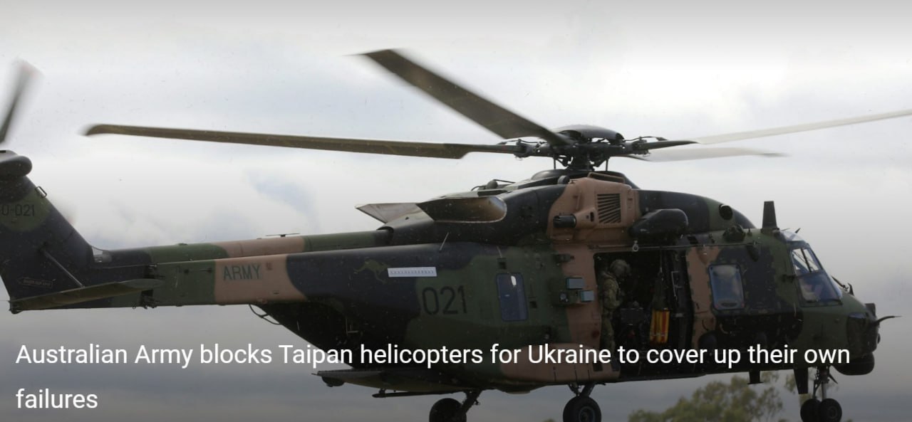 Австралия заблокировала передачу Киеву старых вертолетов MRH90 Taipan. Минобороны страны решило, что транспортные вертолеты слишком стары для безопасной эксплуатации, и приняло решение пустить их на утилизацию.