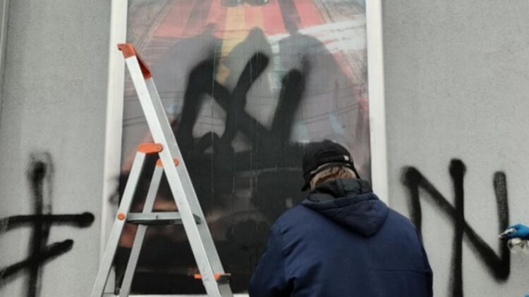В Киеве неизвестные изрисовали краской здание кинотеатра "Жовтень" и оставили на его стенах гомофобные изречения и символику "Азова". Акцию провели из-за предстоящего показа украинского фильма "Уроки толерантности", в котором высмеивается отношение общества к теме ЛГБТ.