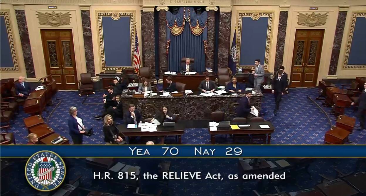 За проголосовали 70 сенаторов, 29 - против (сенаторы-республиканцы).