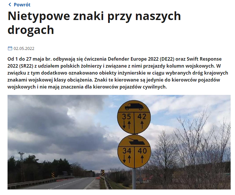 Новые дорожные знаки на дорогах Польши в преддверии учений НАТО. Фото: gov.pl