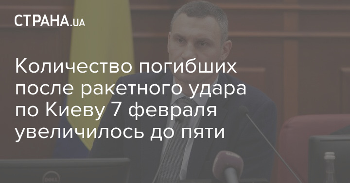 После ракетной атаки по Киеву 7 февраля количество жертв увеличилось до пяти человек.