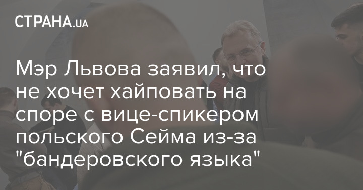 Мэр Львова заявил, что не хочет хайповать на споре с вице-спикером польского Сейма из-за "бандеровского языка"