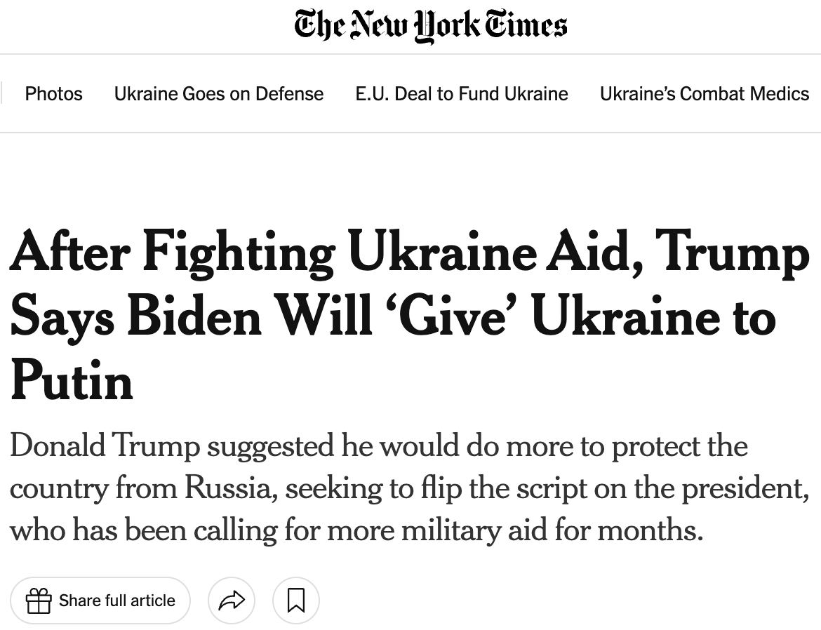 Трамп заявил, что при президенте Байдене Путин "получит все, что он хочет, включая Украину".