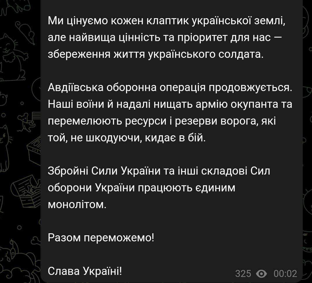 Касательно отступления из укрепрайона "Зенит" пишет, что украинские подразделения вышли оттуда "с незначительными потерями". Так, по его словам, будет и на других угрожающих направлениях в случае необходимости.