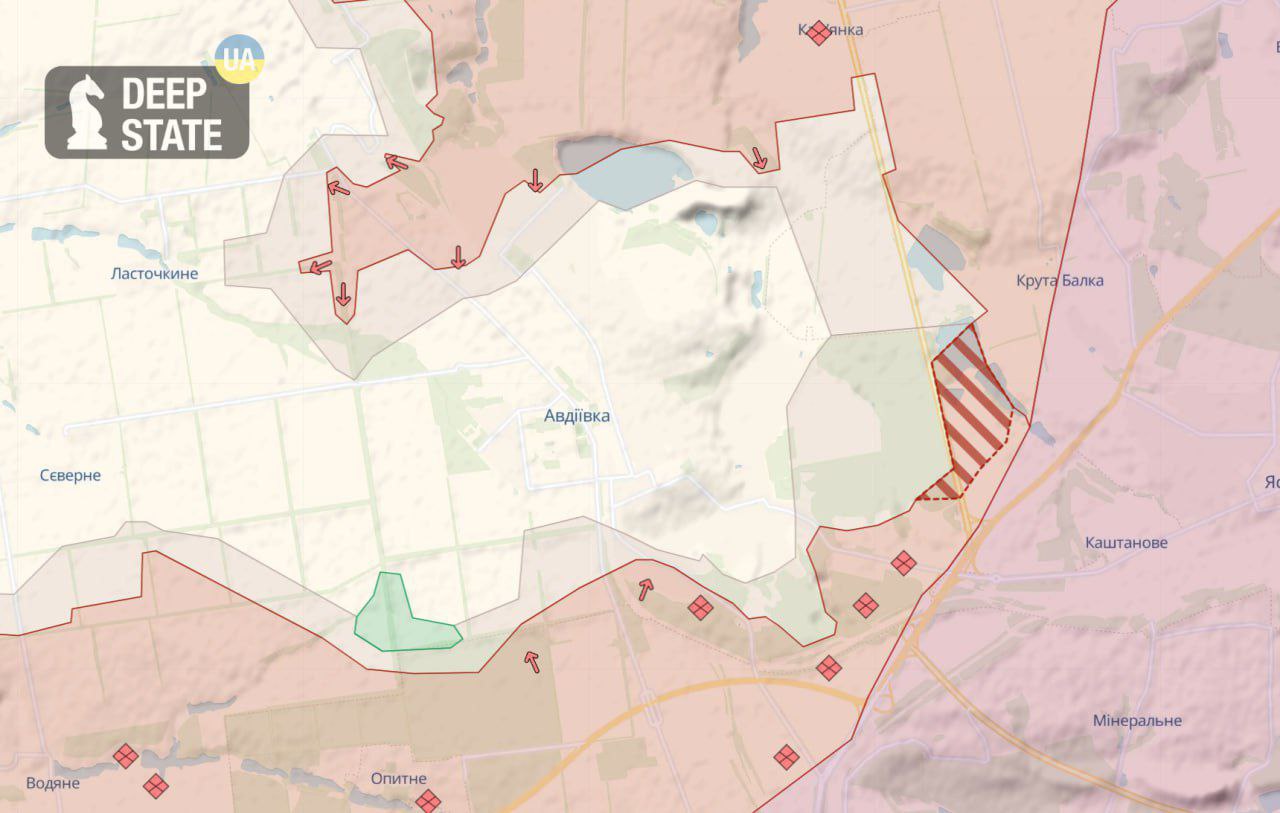 Заявляется, что войска РФ пытаются окружить город и атакуют, среди прочего, село Ласточкино. Отметим, что оно расположено уже на западе от Авдеевки и стоит на трассе 00542, по которой раньше снабжался город.