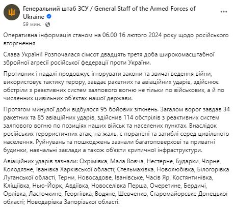 Война в Украине идет уже 723-й день. Мы следим за последними новостями и ключевыми событиями 16 февраля 2024 года в обновляемом онлайне .