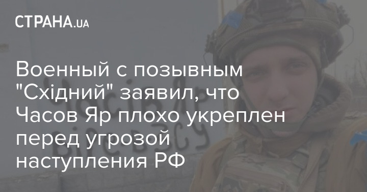 Украинский военный с позывным "Східний", воюющий в Часов Яре, заявляет, что город плохо укреплен перед угрозой наступления РФ.