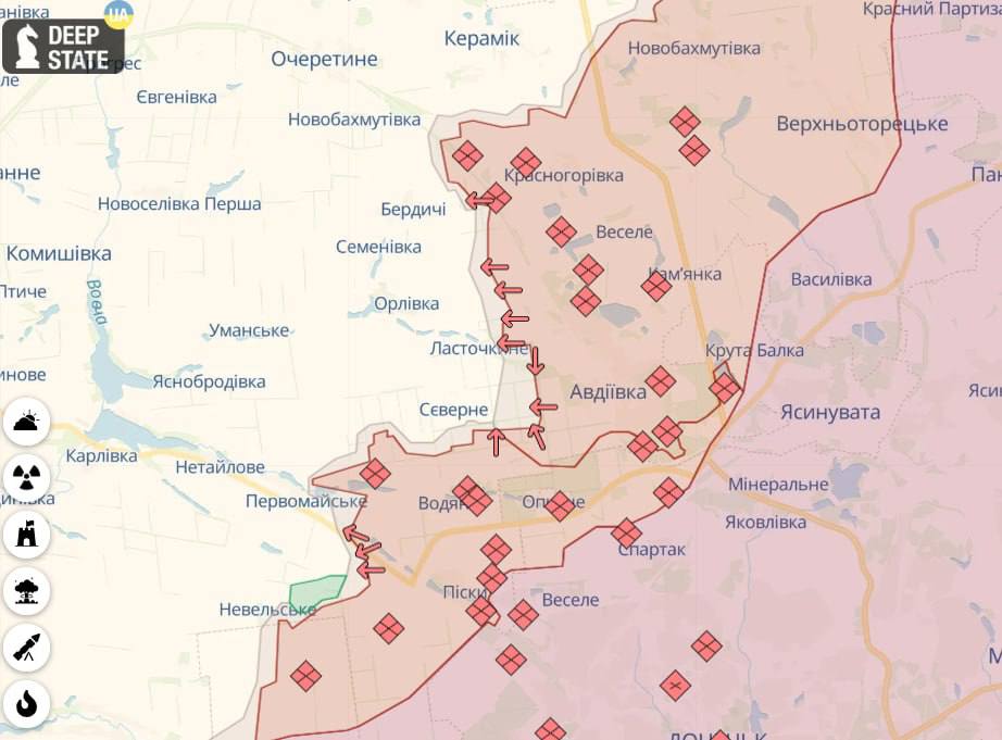 Украина информацию о продвижении российских войск после захвата Авдеевки не подтверждала. При этом на карте украинского военного канала DeepState линия фронта сейчас проходит около Ласточкино.