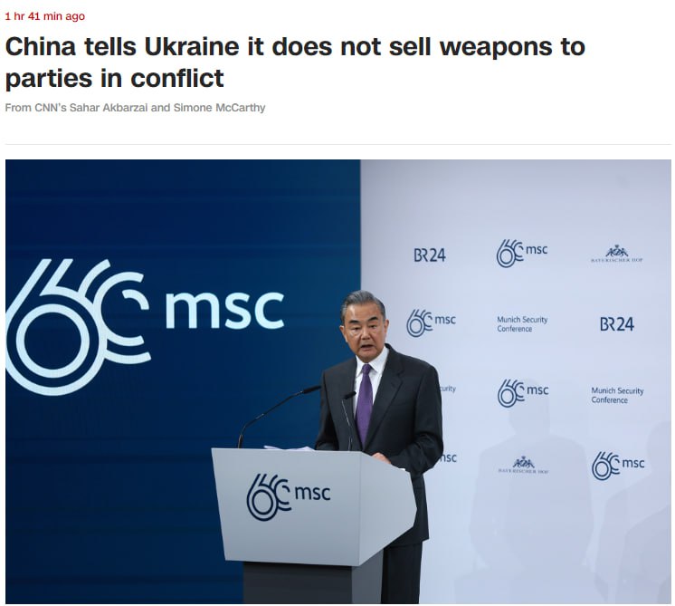 Об этом заявил главный дипломат КНР Ван И своему украинскому коллеге Дмитрию Кулебе во время встречи на Мюнхенской конференции по безопасности, передает CNN.