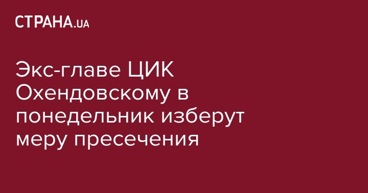 В понедельник, 19 декабря, специализированная антикоррупционная прокуратура обратится в суд с ходатайством об избрании меры пресечения экс-главе ЦИК Михаилу Охендовскому. Об этом сообщает "112 Украина".