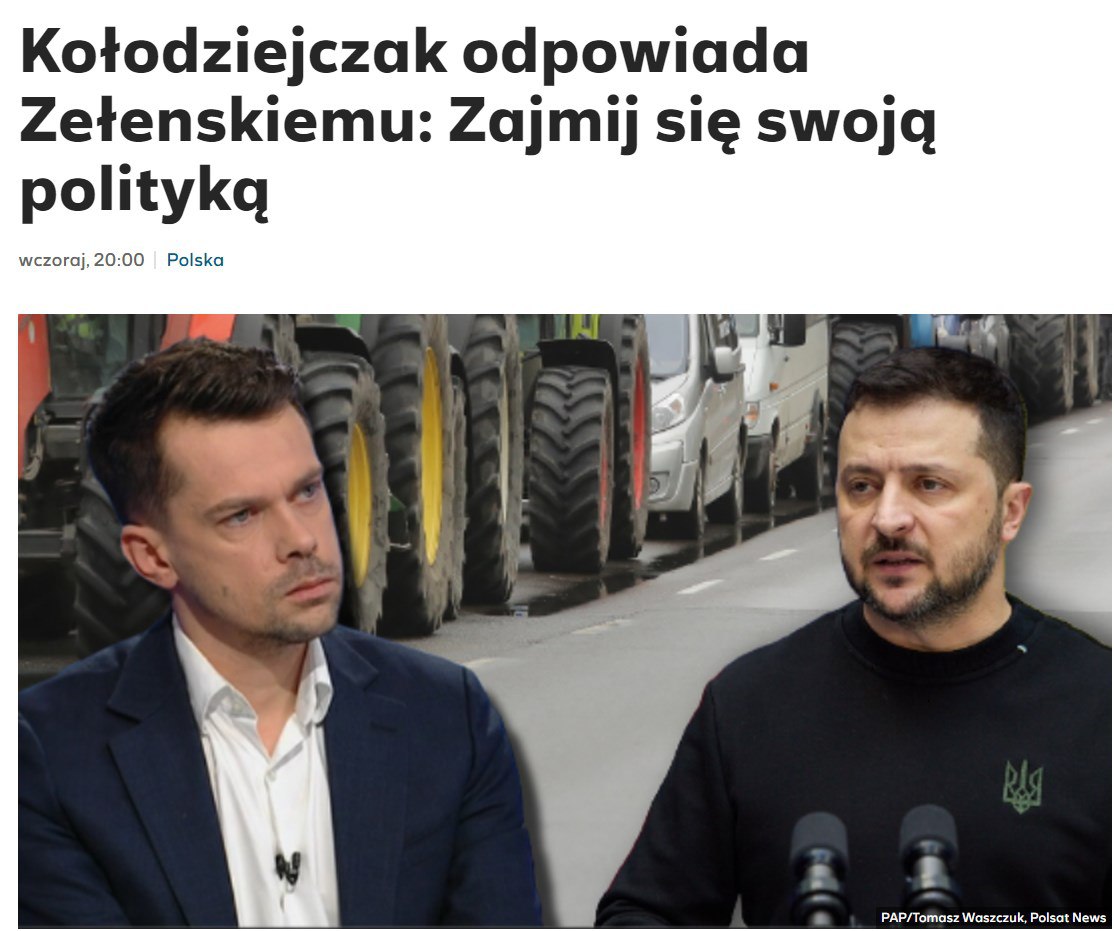 Также один из польских фермеров, блокирующих грузоперевозки на границе, призвал президента РФ помочь "Путин, разберись с Украиной, Брюсселем и нашими правителями". При этом у него был закреплен флаг СССР, позже полиция его задержит.