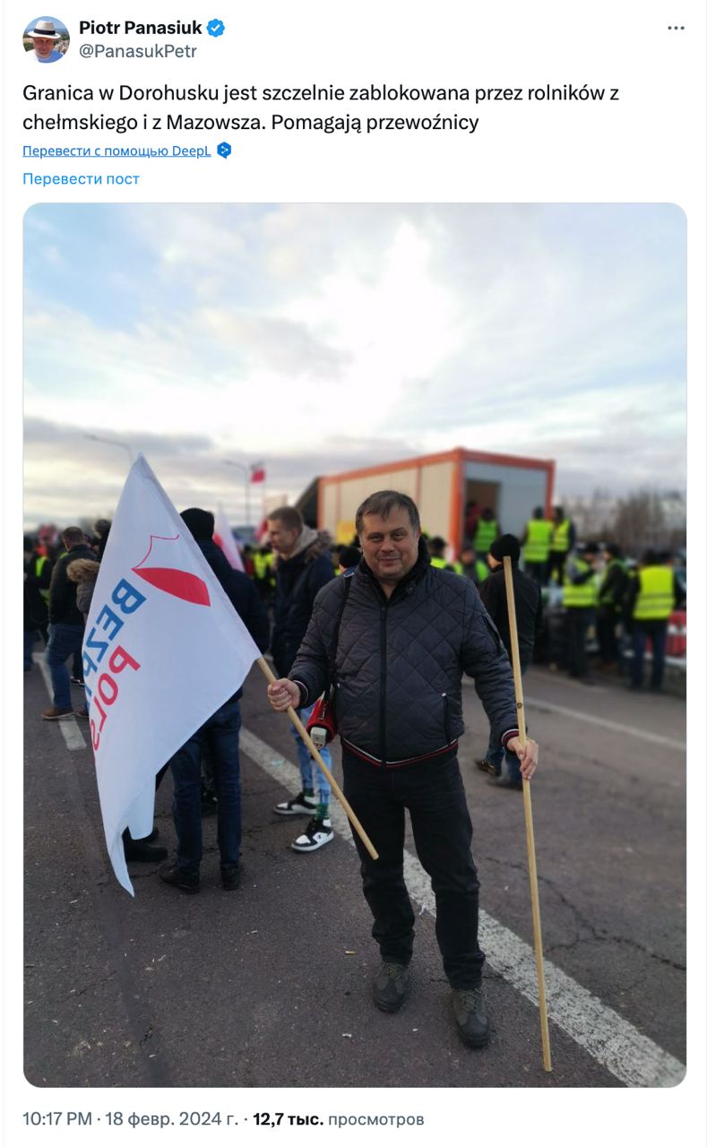 Среди польских протестующих, блокирующих границу, оказался Петр Панасюк, который находится в базе "Миротворца".
