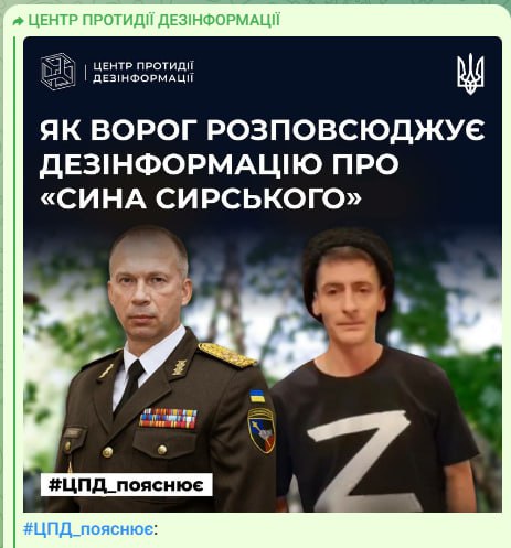 Центр противодействия информации опроверг публикации российских СМИ о том, что поддерживающий политику Владимира Путина Иван Сырский является приемным сыном главнокомандующего ВСУ Александра Сырского.