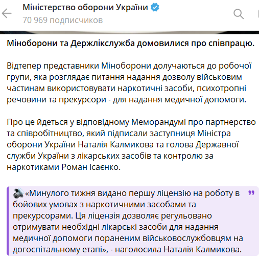 В Украине была выдана первая лицензия на работу в боевых условиях с наркотическими средствами и прекурсорами.