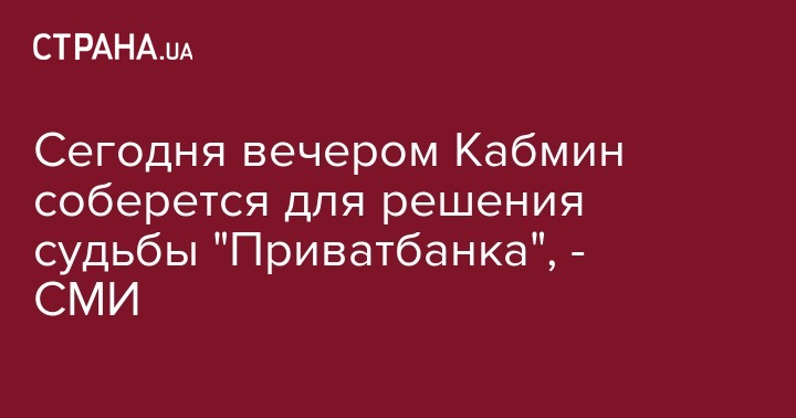 Сегодня в 20.30 состоится внеочередное заседание Кабмина, посвященное национализации "Приватбанка". Об этом пишет "Главком" со ссылкой на свои источники в правительстве.