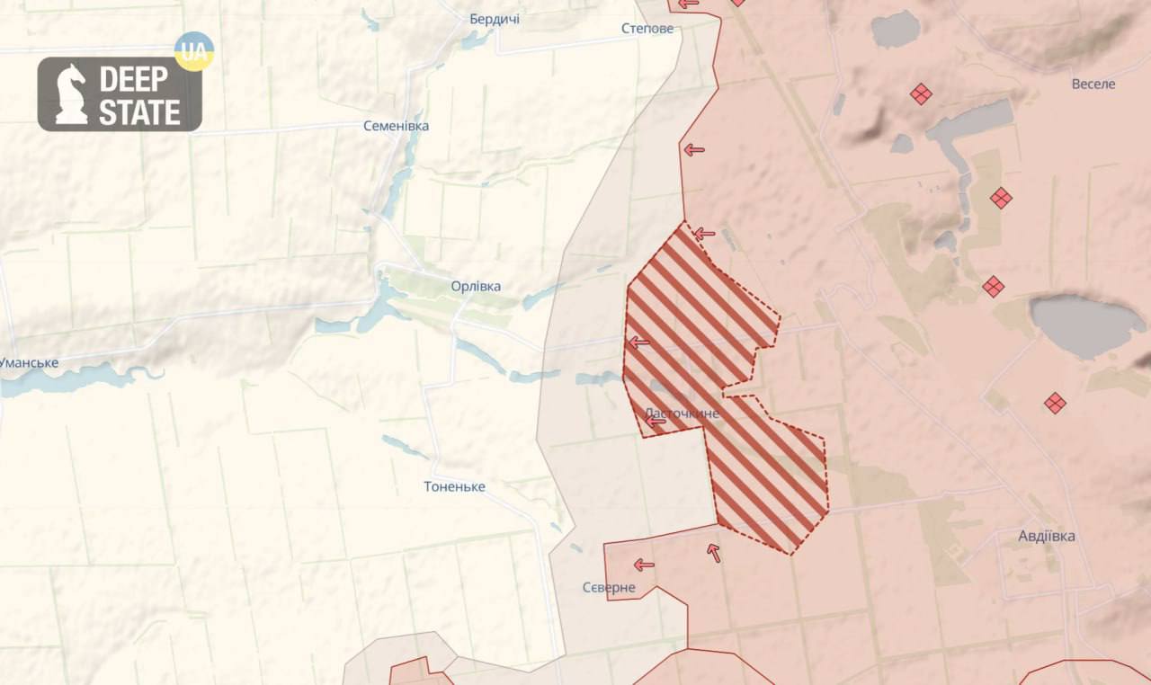 Если посмотреть динамику карты Deep State с 17 (день захвата Авдеевки) по 23 февраля, россияне значительно продвинулись в районе Ласточкино и Северного.