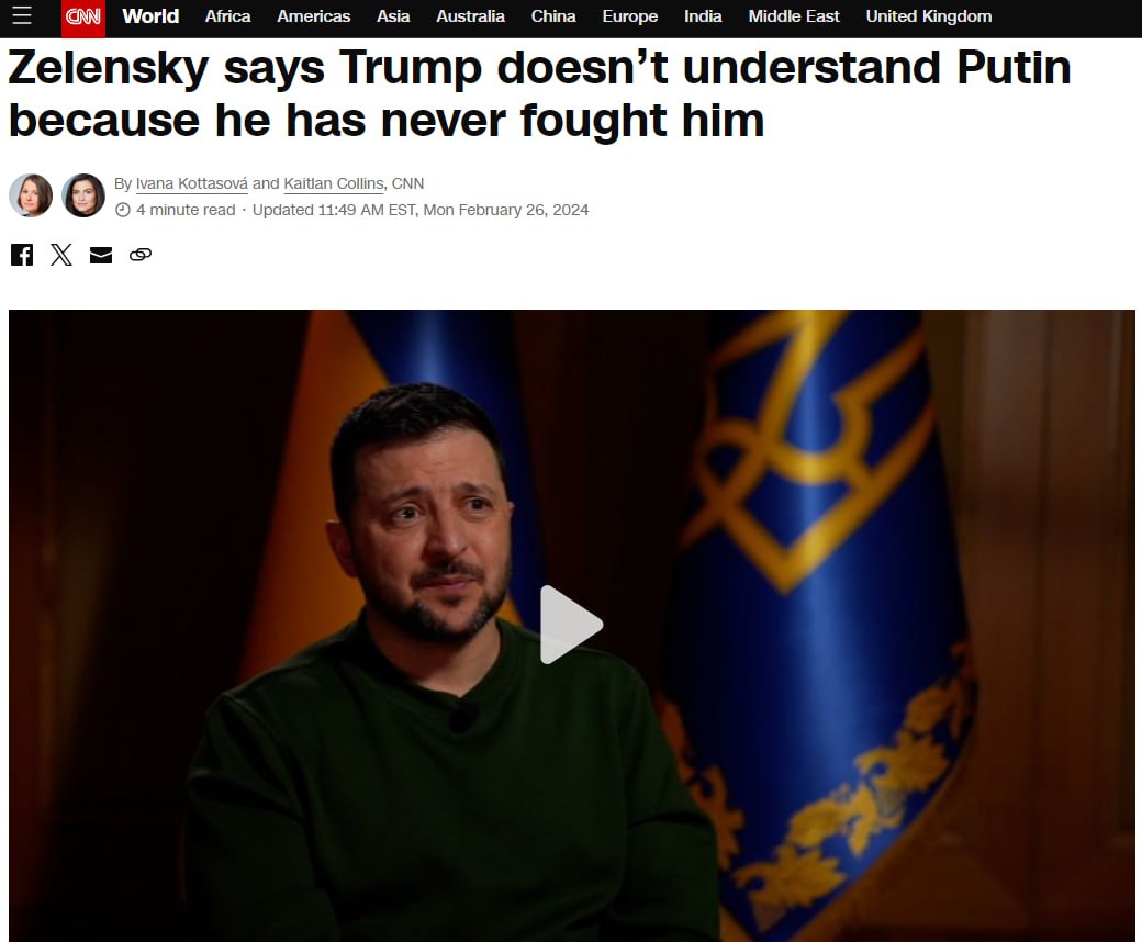 Об этом президент Владимир Зеленский сообщил в интервью CNN.
