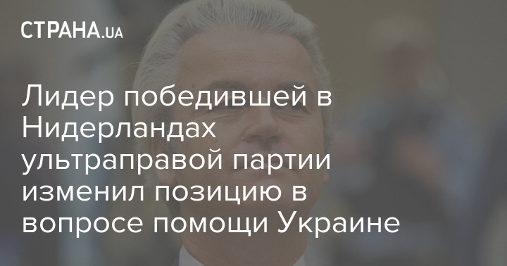 Лидер ультраправой "Партии свободы" (PVV) Нидерландов Герт Вилдерс заявил, что его политическая сила готова обсуждать "любую форму помощи" Украине в рамках коалиционных переговоров, что, как он надеется, ускорит формирование правительства.