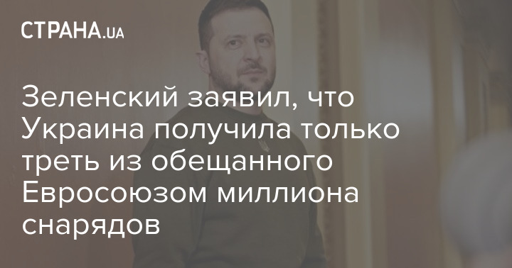 Зеленский заявил, что Украина получила только треть из обещанного Евросоюзом миллиона снарядов