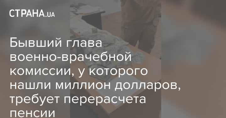 Бывший глава Черниговской областной военно-врачебной комиссии Игорь Кодовбецкий, у которого правоохранители нашли почти миллион долларов наличными и более 22 тысяч евро, подал иск в суд о пересчете своей пенсии.