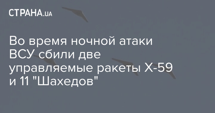 В результате боевой работы противовоздушной обороны уничтожены две управляемые авиационные ракеты Х-59 и 11 "Шахедов" в пределах Харьковской, Сумской, Днепропетровской, Хмельницкой и Кировоградской областей.