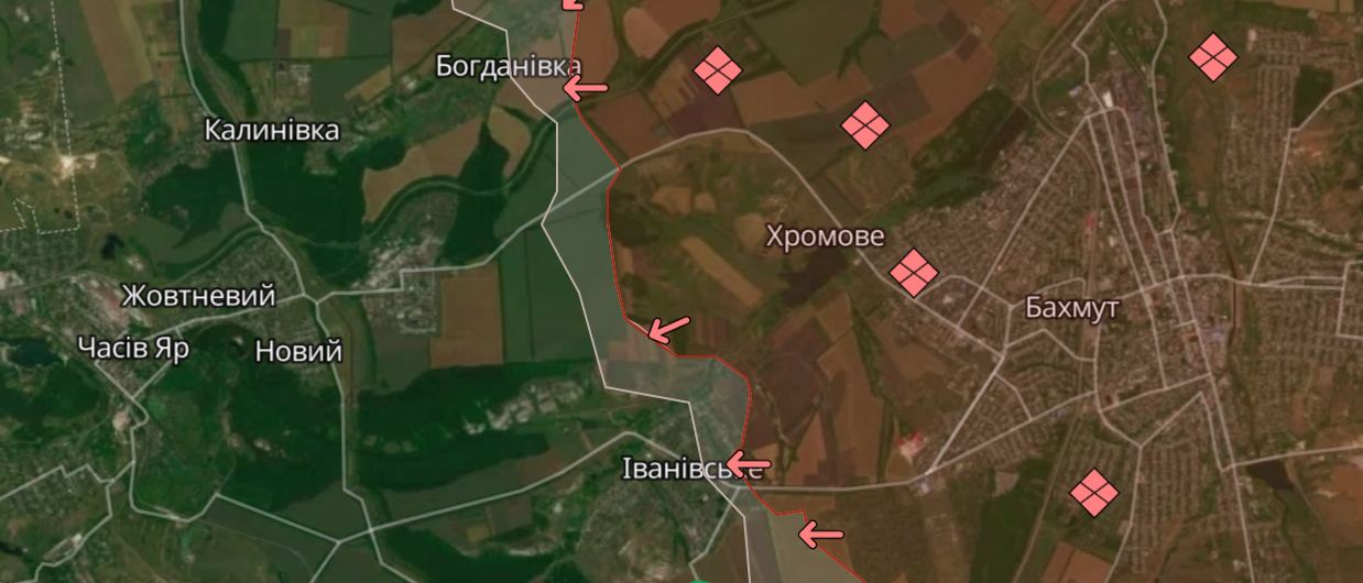 Армия РФ наступает в сторону города Часова Яра Донецкой области на Бахмутском направлении. Бои уже идут в селах Ивановском и Богдановке.