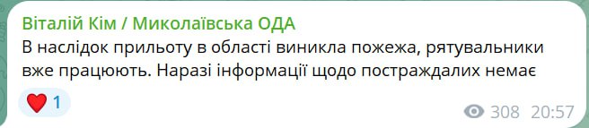21.01 Глава Николаевской ОВА Ким подтвердил прилет в области.