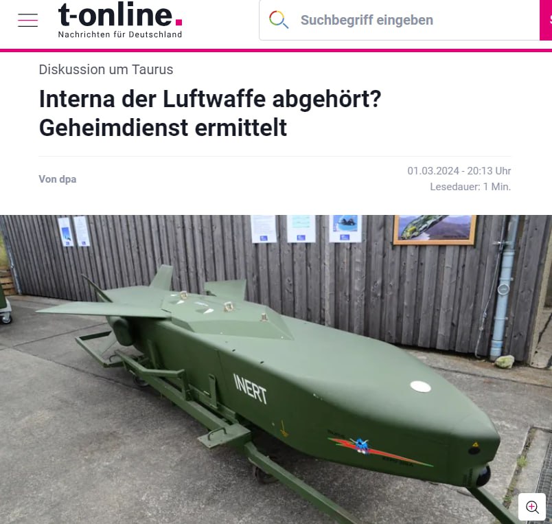 21.30 Минобороны ФРГ инициировало проверку по факту возможного перехвата сообщений ВВС ФРГ о "теоретическом использовании ракет Taurus".