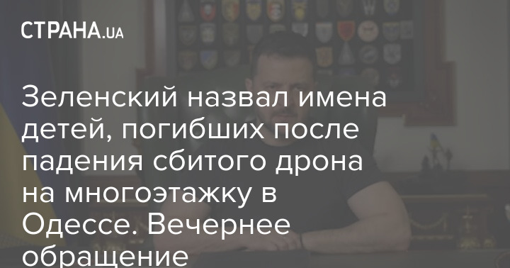 Президент Украины Владимир Зеленский назвал имена детей, которые погибли в Одессе после падения сбитого беспилотника на жилой дом