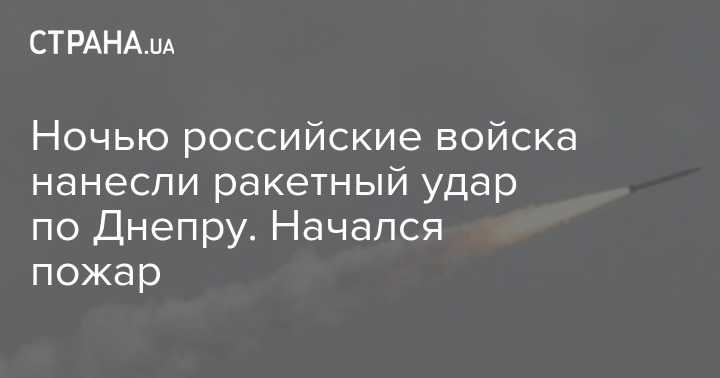 Ночью российские войска нанесли ракетный удар по Днепру. Начался пожар