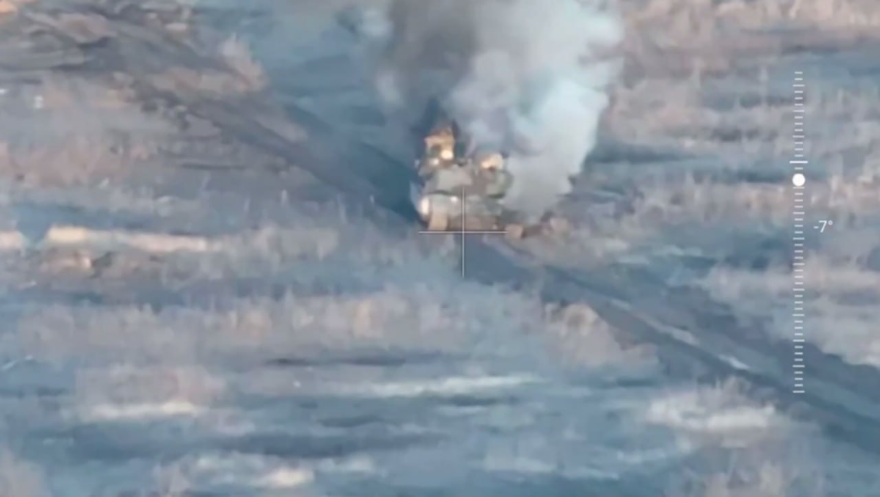 Российские СМИ опубликовали видео удара FPV-дрона "Упырь", как утверждается, по американскому танку.