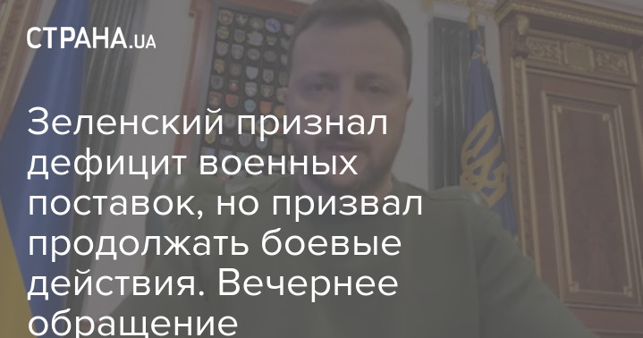 Зеленский признал дефицит военных поставок, но призвал продолжать боевые действия. Вечернее обращение