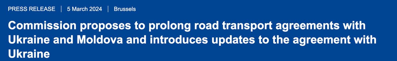 Во вторник Еврокомиссия предложила продлить соглашение об автомобильных перевозках с Украиной, однако она решила внести изменения в него. Решение о внесении изменений в соглашение с Украиной было принято на основе обсуждения с государствами-членами, Украиной и другими заинтересованными сторонами.