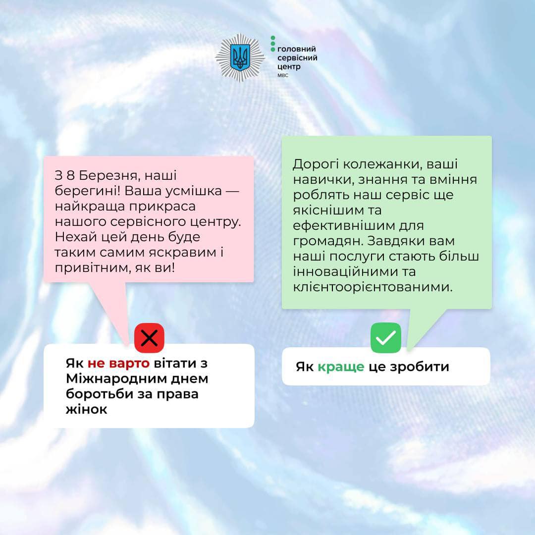• "С 8 Марта, наши берегини! Ваша улыбка - лучшее украшение нашего сервисного центра. Пусть этот день будет таким же ярким и приветливым, как вы!"