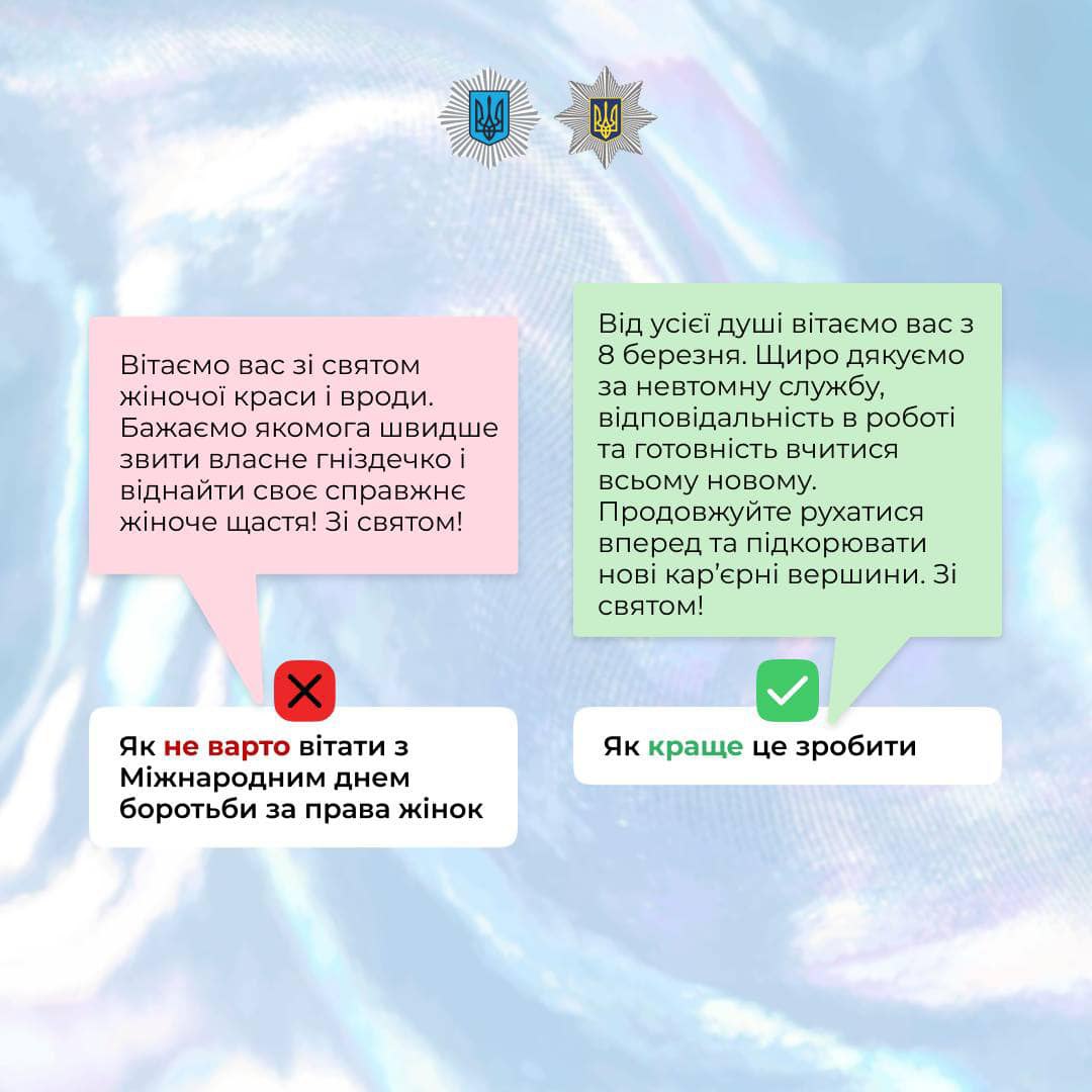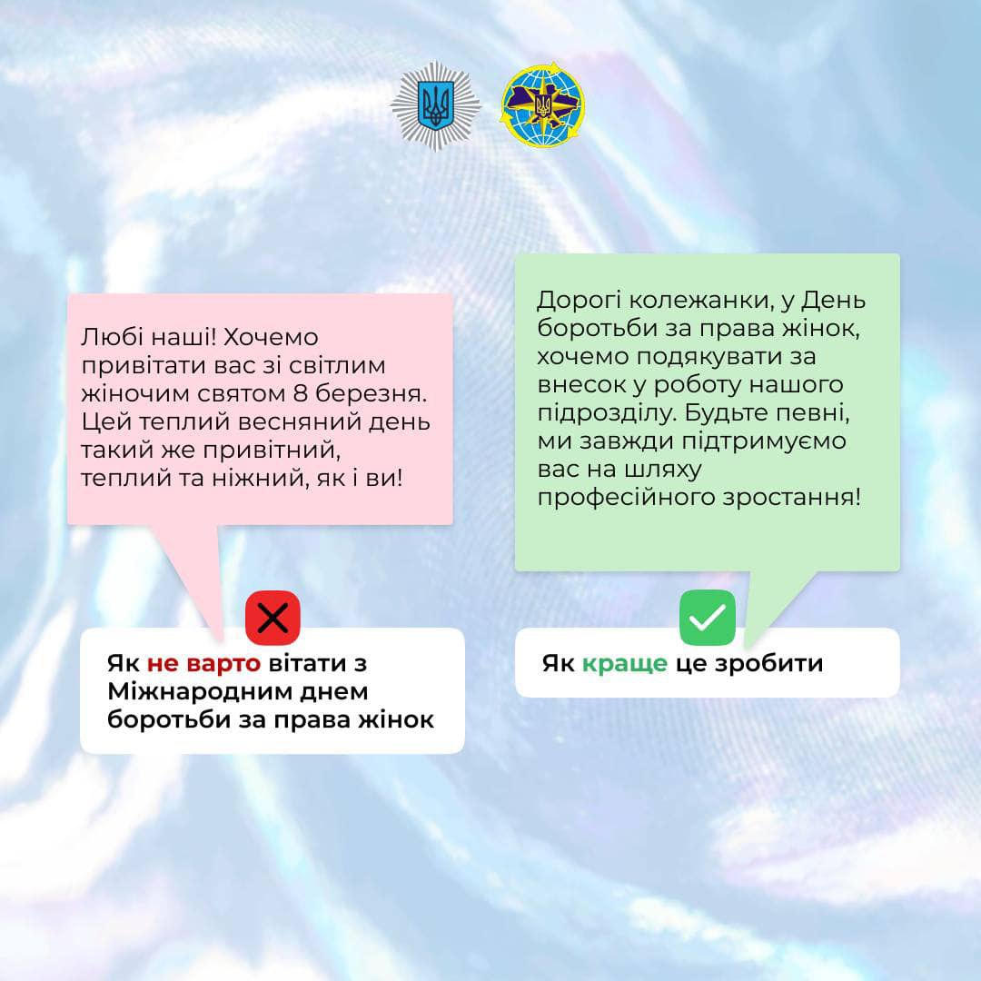 Министерство внутренних дел Украины выпустило информационные листовки для сотрудников о том, как желательно и как не следует поздравлять женщин с праздником 8 Марта.