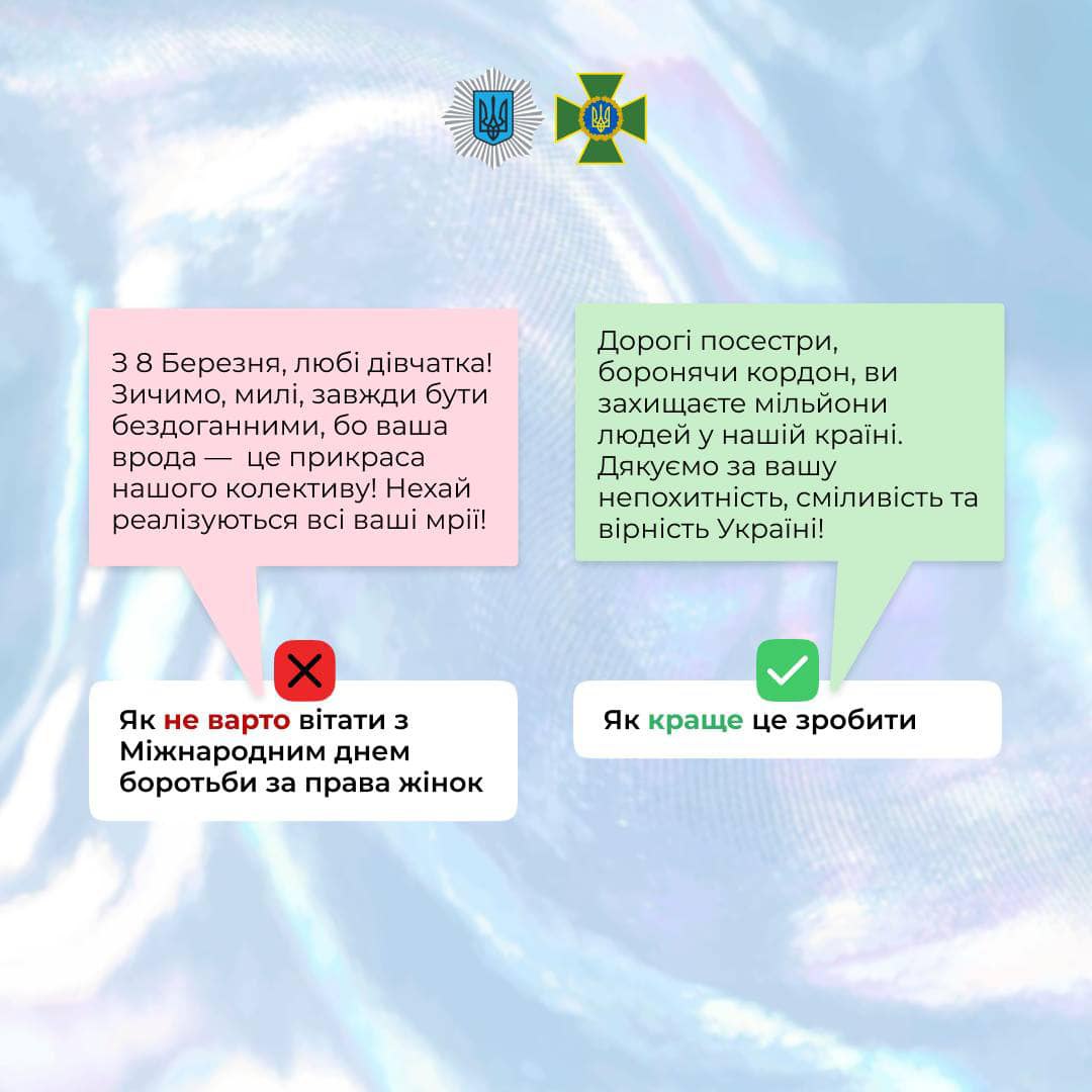 • "Дорогие подруги, защищая границу, вы защищаете миллионы жизней в нашей стране. Благодарим за вашу непоколебимость, смелость и верность Украине!"