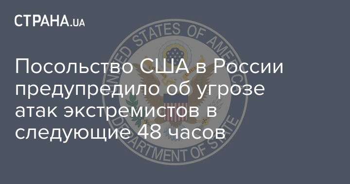 Посольство США в России предупредило об угрозе атак экстремистов в следующие 48 часов