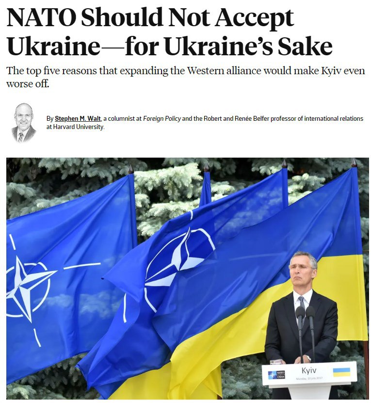 Профессор пишет, что на сегодняшний день к такому риску в НАТО никто не готов и напоминает, что до сих пор ни Соединенные Штаты, ни кто-либо другой из союзников не проявили готовности воевать за Украину.