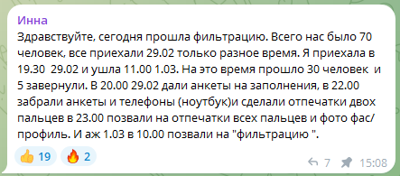 Инна рассказывает, что на фильтрацию у нее ушла вся ночь, ожидание составило более 15 часов.
